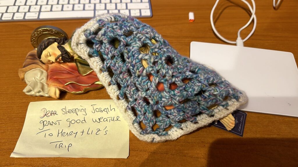 The sun was shining early , and it was no coincidence as we were under divine protection with John Harty having invoked both the child of Prague and the sleeping Joseph . If anyone wakes him they will have me to answer to