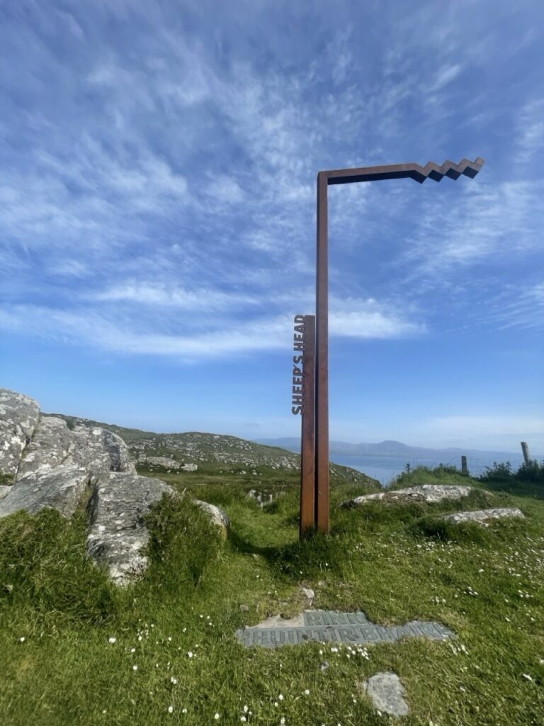 Headed for sheep’s head which was quiet and beautiful. Back to Kilrohane to look for a coffee fix. First two cafes were closed, so had a look in the post office/ shop and noticed a fine coffee machine. Picking up a can of coke and a mars bar I asked the owner if his coffee machine was on. With a sigh he replied “ it is and it isn’t” I took this as a No and paid for my goods . As I turned to go he asked “ do you want the coffee or not ? “. “ but don’t be asking for any fancy coffee , we are hardly up from the Nescafé table and now we are all coffee snobs “. I took this as a hint that I was not to order a vanilla oat Frappuccino and meekly requested 2 americanos. Same were delivered with complimentary jam tarts. As he seemed to be warming up a bit I commented on the weather which is rather fine. “No it’s not he said” I asked why … his reply “ tooorists that’s why , far too many of them”. It could have been a conversation stopper ,but we persisted and he cracked eventually.
