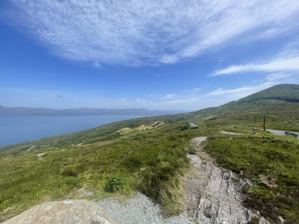 Over the goats pass for a swim at gortnakilla , sublime. Into Bantry and then a not so pleasant road to adrigole. No shop open and we were parched. Padraig to the rescue at the national school , not only water but raided the staff room biscuit tin also.