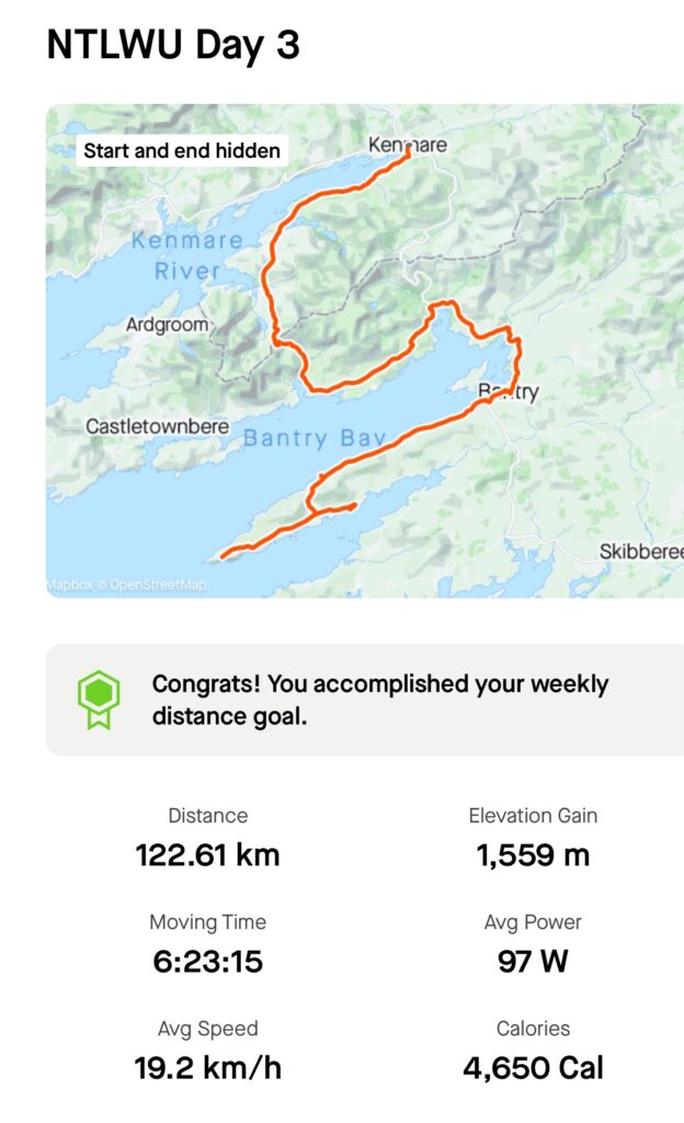 Hefty climb over the Healy pass and a long run into kinsale where Oksama has already exceeded expectations by doing our laundry