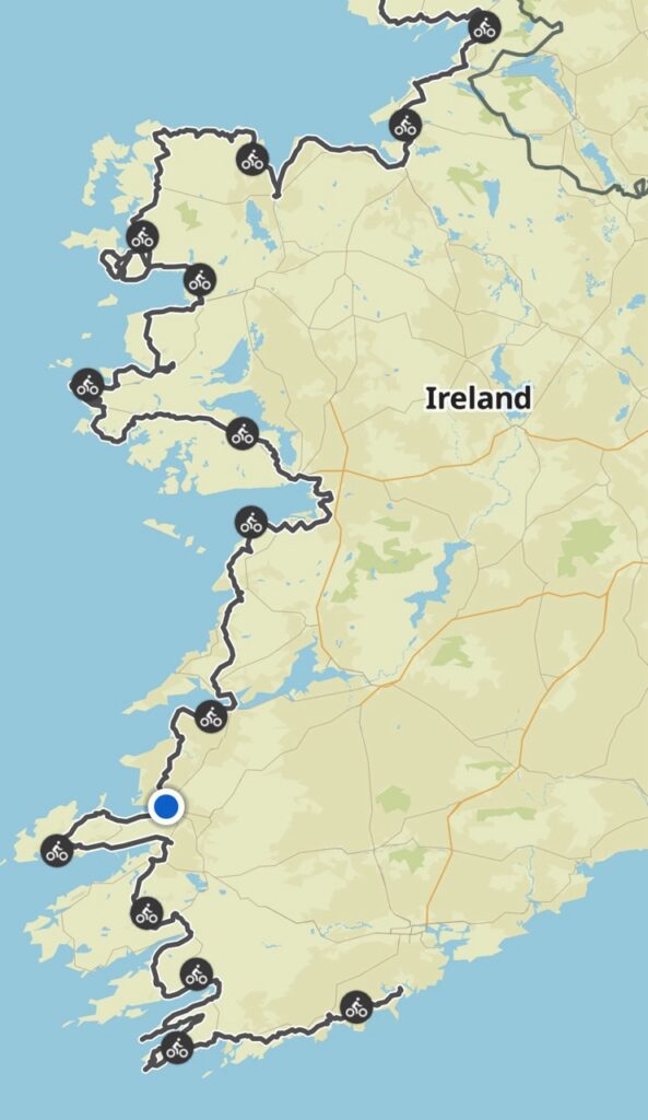 Then a nasty main road to Tralee ,with the benefit of a tailwind. No thanks to Komoot for delivering us to the tradesman’s entrance of the hotel however.