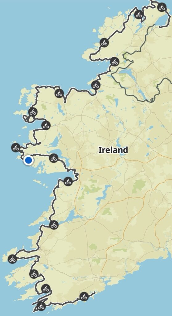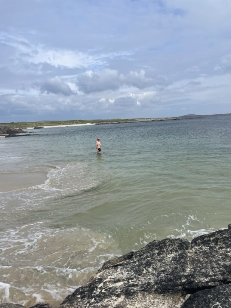 Arrived at roundstone hotel , unloaded bikes and went to Gorteen beach for a lovely if freezing swim. Stunning beach.