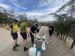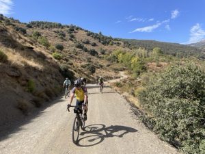 Set off 9.15 straight onto gravel and I don’t think we saw tarmac all day. Into big climb to 2300 m first. The usual pecking order established with the 4.5 w/kg group of TK, twef and CLS. PS did make a brave attempt to stick with them but was dropped without a care by the leaders.