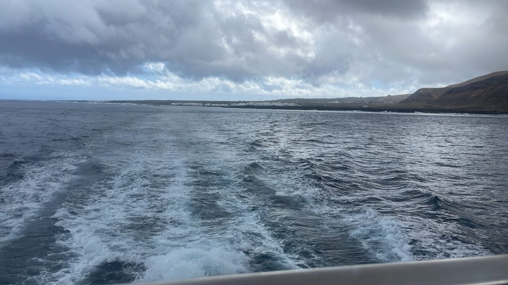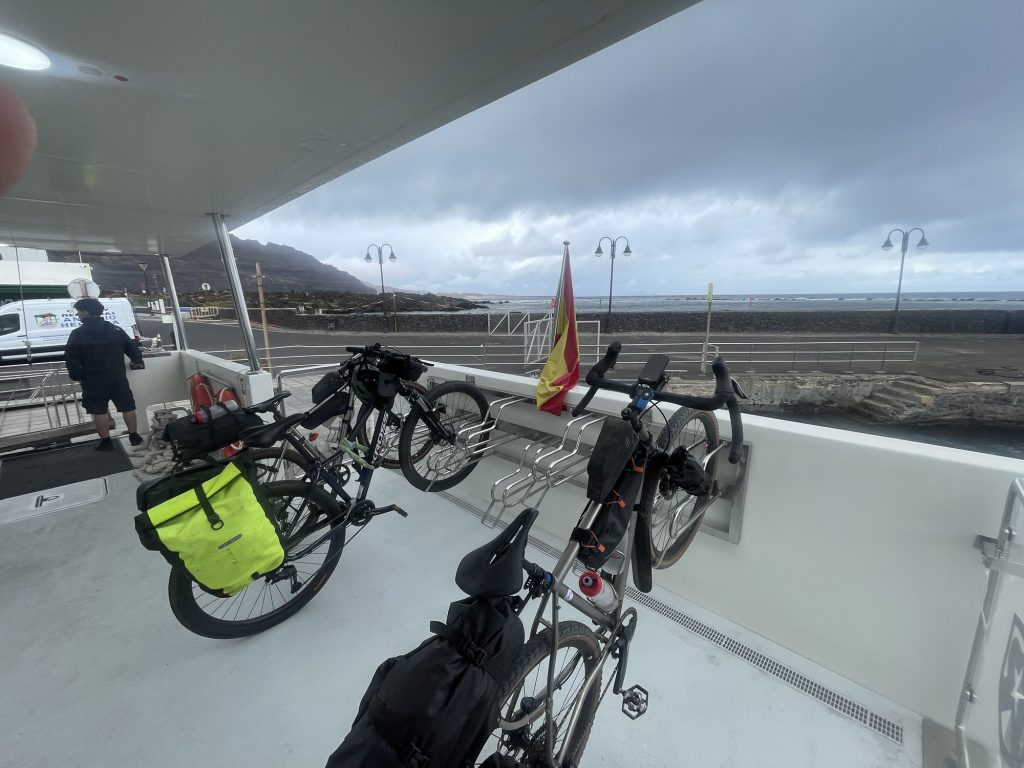 Then out onto a road with delicious tailwind for a downhill run into Orzola. the ferry was waiting for us with the gangplank down obviously Mr Harty had phoned the captain.