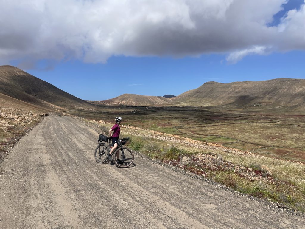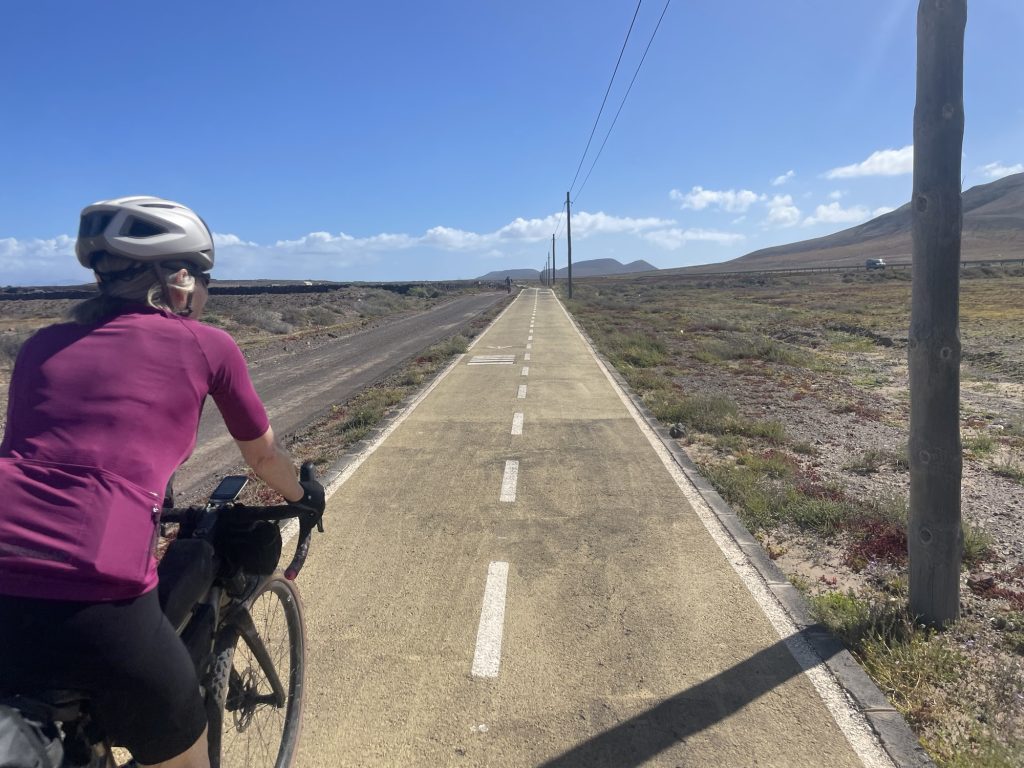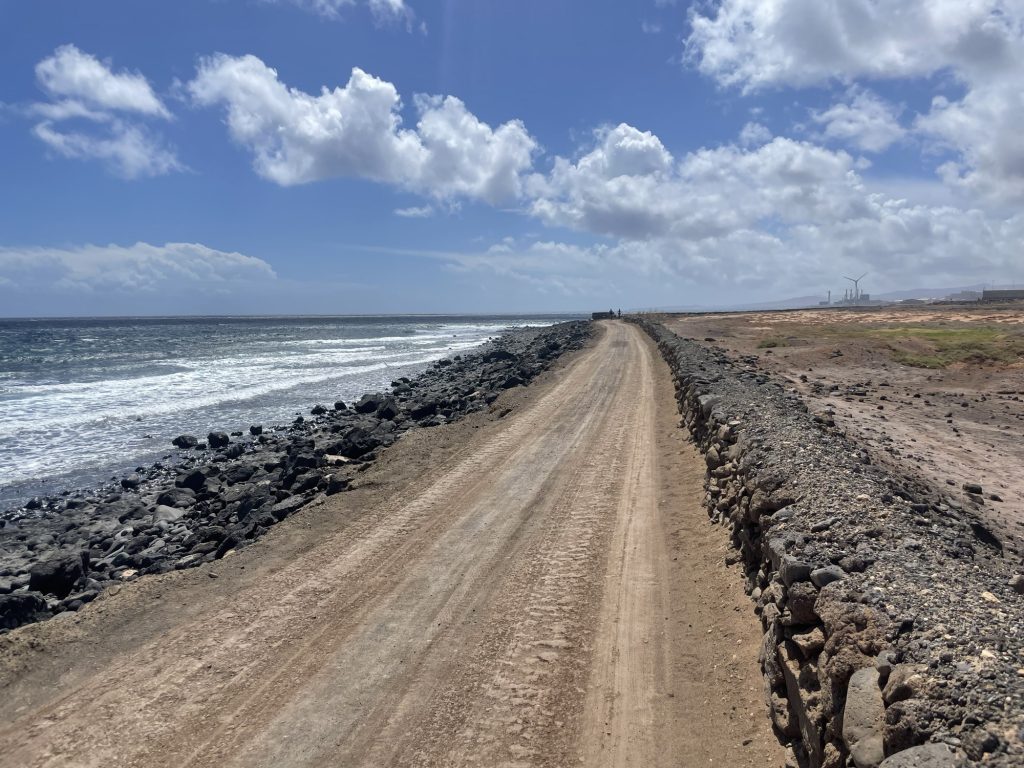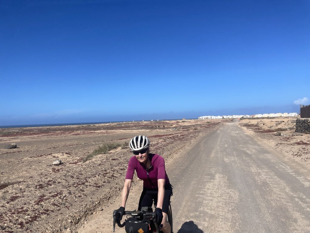 Onwards towards the coast and a gravel track , back into the wind here. But we were soon in sight of port del rosario
