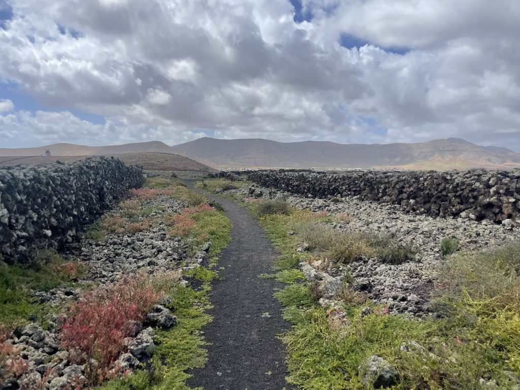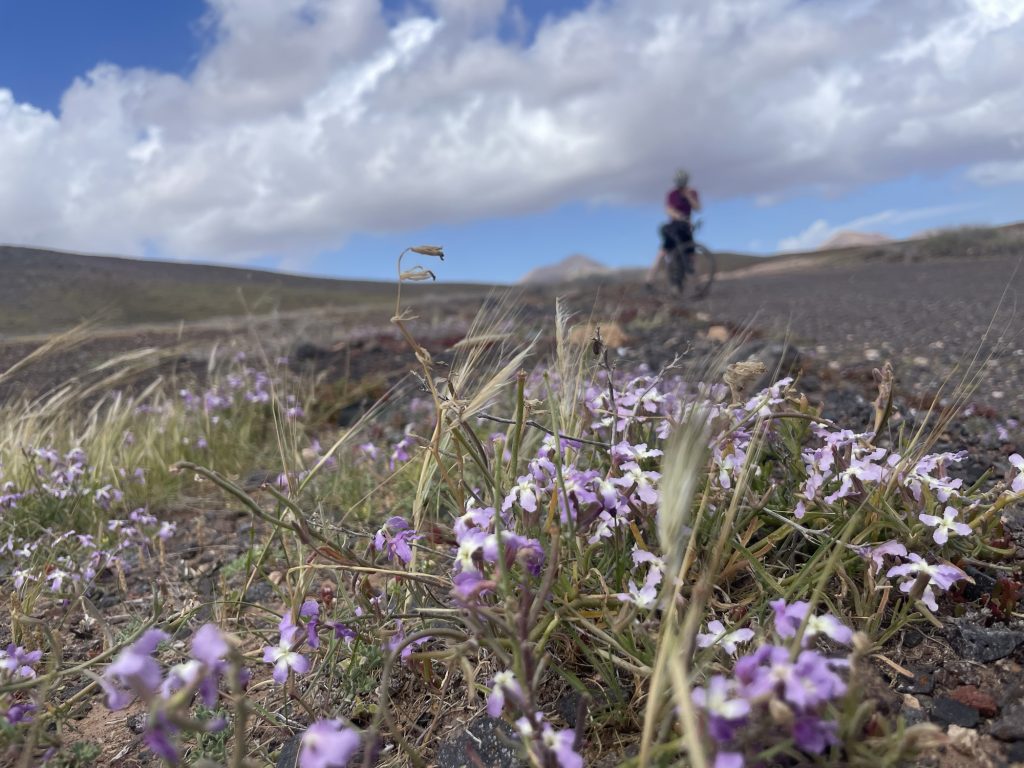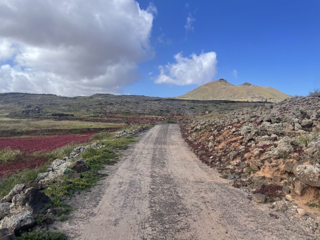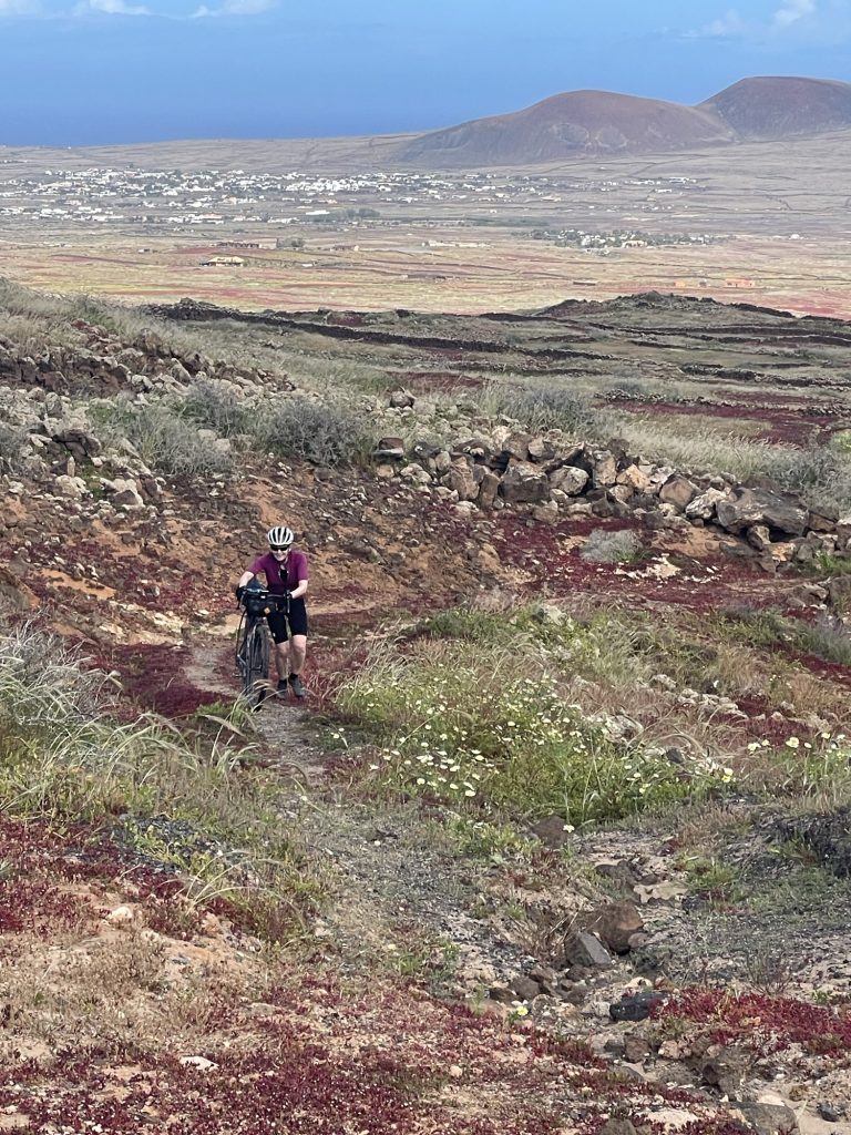 Onwards towards the coast and a gravel track , back into the wind here. But we were soon in sight of port del rosario