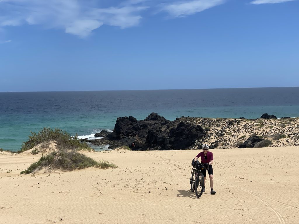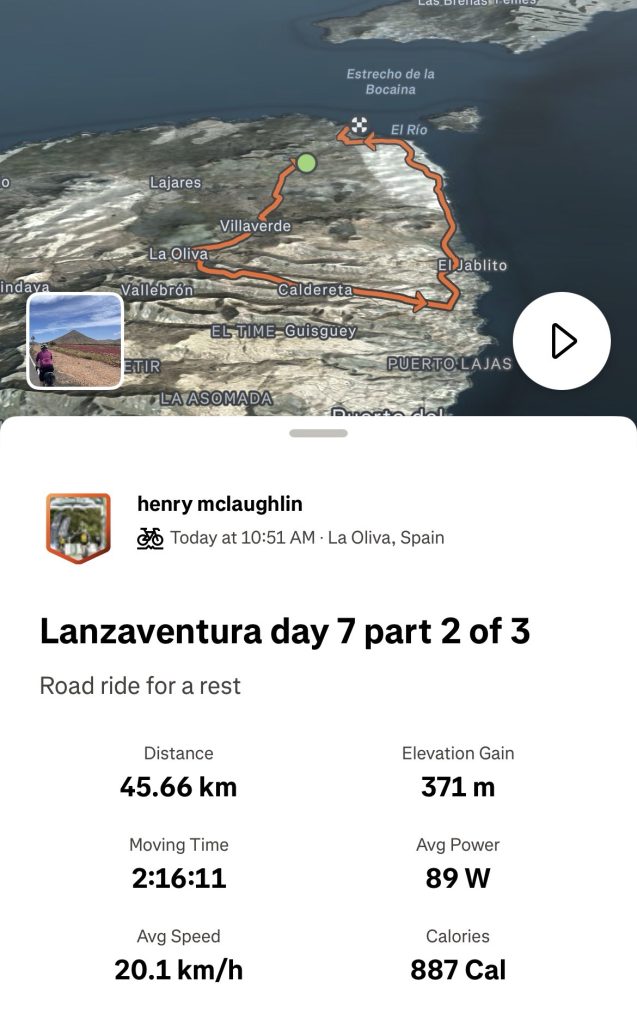 Up to La Olivia , headwind , then left to Caldereta ( blink and you’ll miss it) . Then hard to port and along the coastal road through the national park. Glorious tailwind. Shook out the reefs , dropped the number 2 , hoisted the Genoa and a broad reach the whole way back to the port .