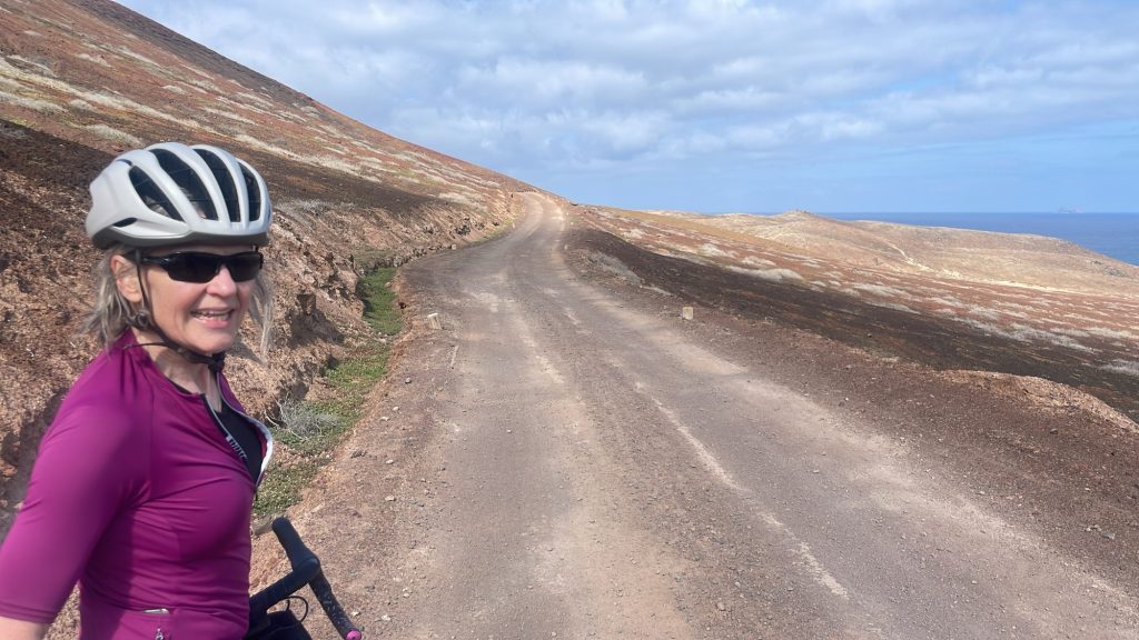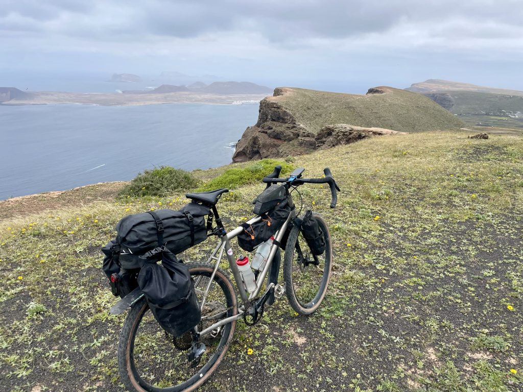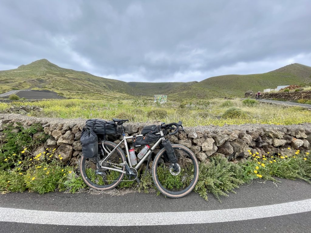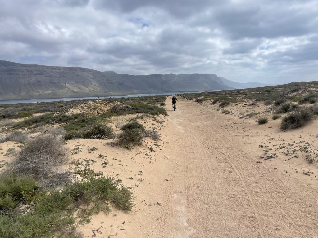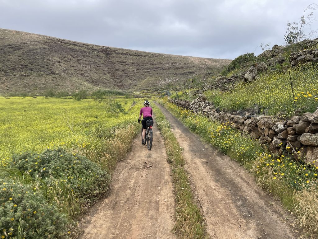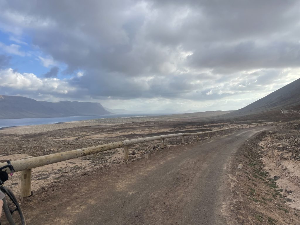 Sunny on and off all day but our good friend the headwind never left us. Beautiful gravel and back roads all the way to Orzola port.
